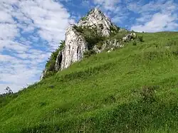 - 1 2 Grzegorz Rettinger, Jura południowa. Przewodnik wspinaczkowy, Kraków: wspinanie.pl, 2020, s. 79, ISBN 978-83-987425-6-6.