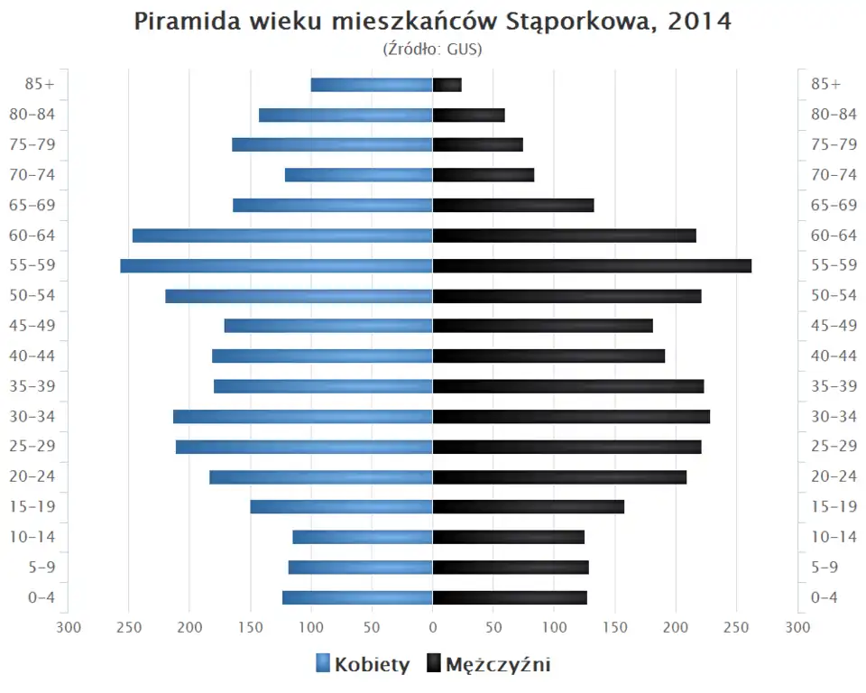 - Piramida wieku mieszkańców Stąporkowa w 2014 roku[13].