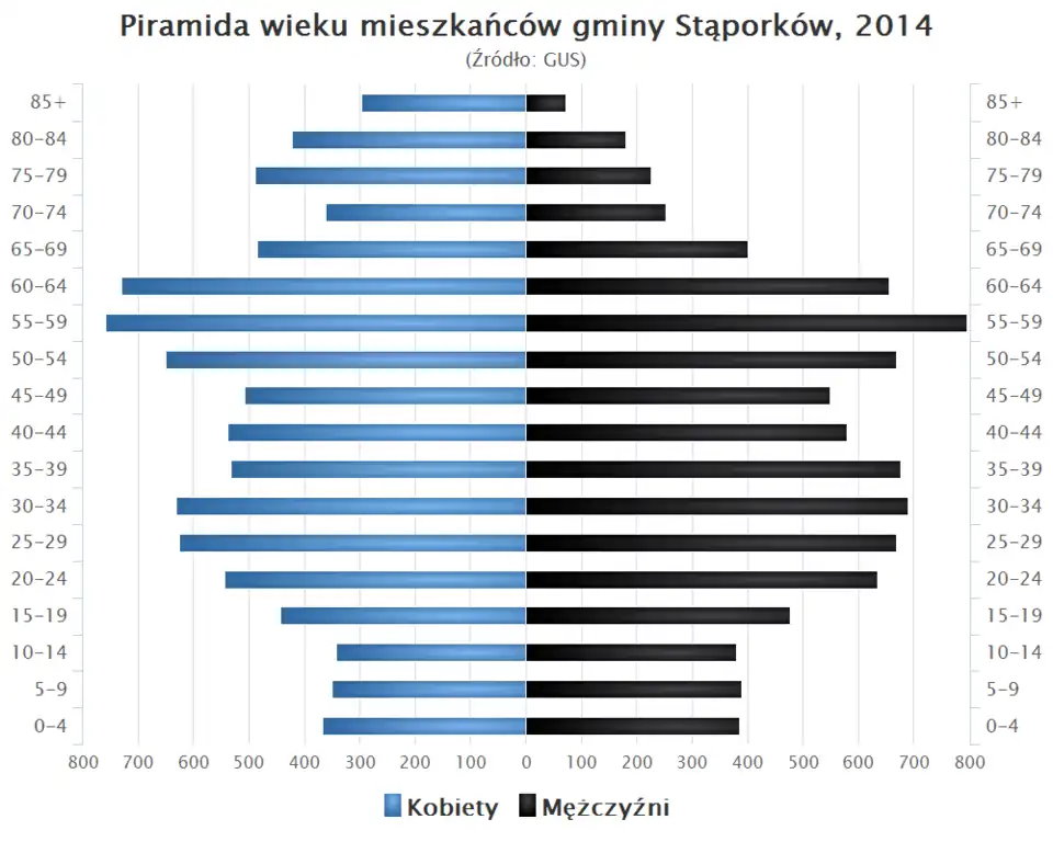 - Piramida wieku mieszkańców gminy Stąporków w 2014 roku[10].
