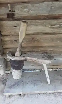 - moździerz kaszarski – urządzenie używane do obłuskiwania i kruszenia ziarna na kaszę. Składa się z wysokiego, wąskiego naczynia wydrążonego w kamieniu lub drewnie (rodzaj moździerza) i drewnianego ubijaka zwanego stęporem. Często dolna, robocza powierzchnia stępora nabijana była metalowymi ćwiekami.