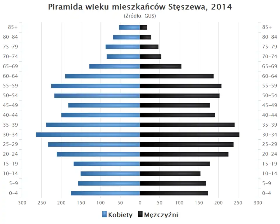 - Piramida wieku mieszkańców Stęszewa w 2014 roku.