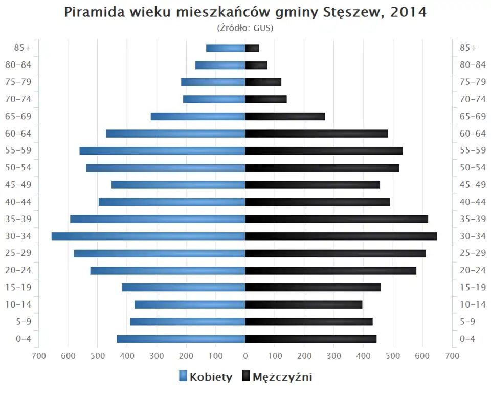 - Piramida wieku mieszkańców gminy Stęszew w 2014 roku[1].