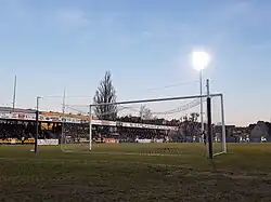 - ↑ Ruszyły prace na stadionie. Na początek stawiają trybunę krytą [online], dziennikelblaski.pl [dostęp 2019-03-03] (pol.).