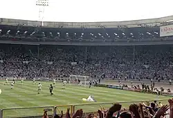 Pierwszy mecz piłkarski na Wembley, finał FA Cup, odbył się w 28 kwietnia 1923 pomiędzy drużynami Bolton Wanderers i West Ham United[1][14]. Na tym stadionie rozegrano wszystkie finały Pucharu Anglii do roku 2000[14].