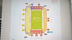 | zadaszenie – 1192 miejsc (w tym 266 miejsc jako trybuna prasowa)[44] |
