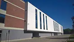 Pierwszą dużą inwestycją po II wojnie światowej na terenie dawnego kompleksu WiMy było wybudowanie na przełomie lat 50. i 60. budynku klubowego oraz sali gimnastycznej[25]. Akt erekcyjny wmurowano 26 września 1958, a w uroczystościach wzięli udział minister finansów – Tadeusz Dietrich oraz I sekretarz Komitetu Wojewódzkiego PZPR dla miasta Łodzi – Michalina Tatarkówna-Majkowska[30].