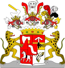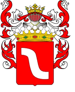 Herb z nadania 26 marca 1784: Jest to zwykła Drużyna z oznakami godności hrabiego, bez klejnotu.