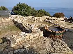 Na terenie dostępnych do zwiedzania wykopalisk odkryto liczne obiekty miasta antycznego. Poza dobrze zachowanymi murami obronnymi z końca VI wieku p.n.e., także resztki budowli skupionych wokół agory (m.in. stoę), pozostałości archaicznego sanktuarium oraz domów mieszkalnych z okresu klasycznego i hellenistycznego wraz z miejskim wodociągiem[6].