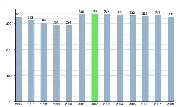 Według danych z dnia 31 grudnia 2012, wieś zamieszkiwało 336 osób, w tym 162 kobiety i 174 mężczyzn[6].