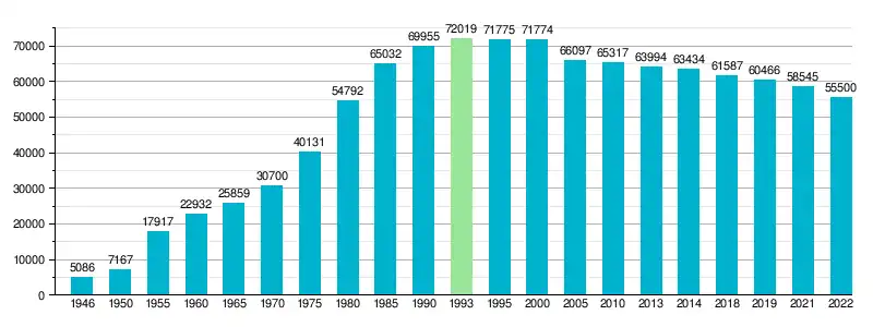 Według danych GUS z 1 stycznia 2024 roku miasto liczyło 55 127 mieszkańców[1].