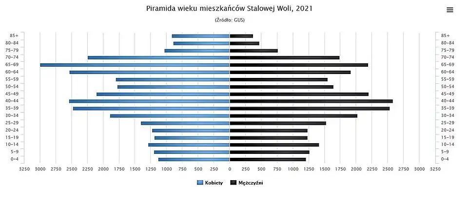 - ↑ Na podstawie danych GUS, Stalowa Wola [online], Polska w liczbach [dostęp 2024-04-01] (pol.).