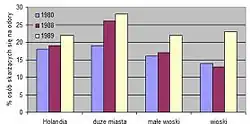 Potwierdzenie skuteczności wprowadzonych regulacji prawnych wymaga wykonywania wieloletnich badań opinii mieszkańców różnych regionów kraju - o zróżnicowanych sposobach zagospodarowania (np. miasta, obszary przemysłowe, tereny rolnicze). Takie badania są systematycznie prowadzone w różnych krajach. Na ilustracjach przedstawiono część wyników zgromadzonych w Holandii w latach 1980–2005[33][34]. Po wprowadzeniu standardów zapachowej jakości powietrza zaobserwowano około dwukrotny spadek udziału negatywnych opinii o zapachu w ankietach dotyczących jakości środowiska.