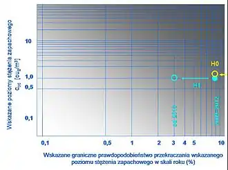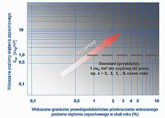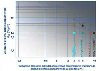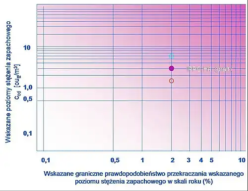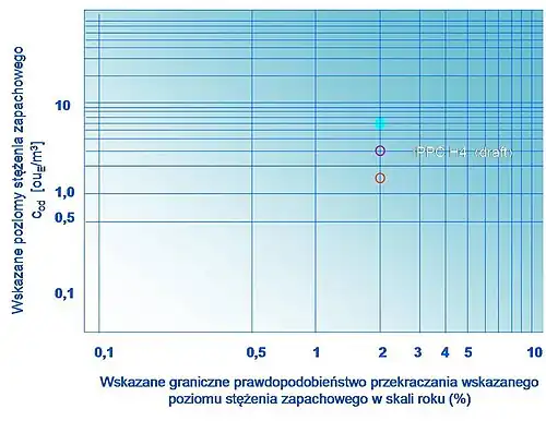 - częstości przekraczania (w skali roku) wskazanych poziomów stężenia zapachowego