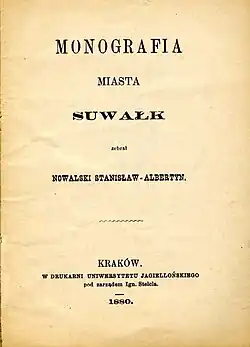 - ↑ Stanisław Nowalski, Monografia miasta Suwałk, Kraków 1880.