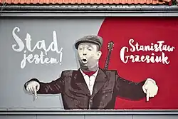 - Od 2012 do 2019 roku na budynku mieszkalnym przy ul. Puławskiej 143 widniał mural Syn ulicy upamiętniający artystę[67][68]. W 2016 na bocznej ścianie kamienicy przy ul. Lubkowskiej 7/9 (od strony ul. Gagarina) odsłonięto mural przedstawiający Stanisława Grzesiuka z bandżolą i napisem Stąd jestem! Stanisław Grzesiuk[69].