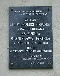 - 1 2 3 4 5 6 7 8 Jaćmierz: 100-lecie urodzin bp. Stanisława Jakiela (zapowiedź). jmichalik.episkopat.pl (arch.), 2010-07-19. [dostęp 2019-01-25].