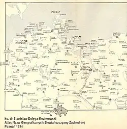 - ↑ ks. Stanisław Kozierowski: Atlas nazw geograficznych Słowiańszczyzny Zachodniej. T. Zeszyt I. Poznań: 1934.