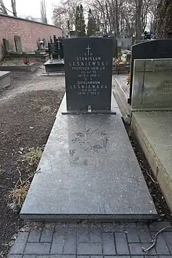 - ↑ Cmentarz Stare Powązki: STANISŁAW LEŚNIEWSKI, [w:] Warszawskie Zabytkowe Pomniki Nagrobne [dostęp 2019-12-18].