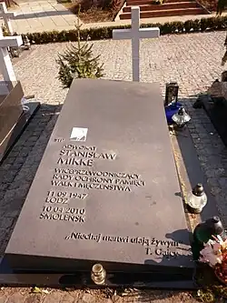 - ↑ Uroczystości pogrzebowe Stanisława Mikkego. interia.pl, 2010-04-26. [dostęp 2010-04-26]. (pol.).