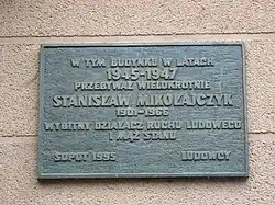 - ↑ Janusz Gmitruk: Stanisław Mikołajczyk 1901–1966: materiały z konferencji naukowej. Muzeum Historii Polskiego Ruchu Ludowego, 1998, s. 4. ISBN 978-83-87838-08-9.