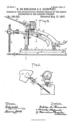 - 1 2 Nikołaj Benardos, Stanisław Olszewski: "Process of and apparatus for working metals by the direct application of the electric current" patent nr 363 320. Washington: United States Patent Office, 17 may 1887.