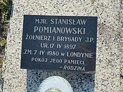 Zmarł w Londynie, a jego prochy zostały sprowadzone do Polski i pochowane na cmentarzu parafialnym w Górze Świętej Małgorzaty (grób nr 67).