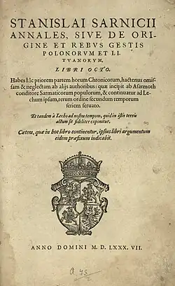 Na zlecenie Jana Zamoyskiego rozpoczął pisanie historii Polski, która w założeniu protektora miała być ujęta w duchu monarchicznym. Kiedy okazało się, że dzieło propaguje wartości szlacheckie Zamoyski wycofał swoją protekcję. Roczniki, czyli o pochodzeniu i sprawach Polaków i Litwinów Ksiąg VIII (Annales, sive de origine et rebus gestis Polonorum et Lithuanorum libri VIII) wydane zostały w 1587 roku. Autor rozpoczyna opis dziejów Polski od roku 2210 przed Chrystusem. Udowadnia, że biblijnym protoplastą Polaków był syn Sema, Asarmota. Ponadto przodkowie Polaków mieli być spokrewnieni z Jezusem Chrystusem, który również pochodził z pokolenia Sema. W mitotwórczym utworze historycznym pojawia się również wątek trojański: przodkowie Polaków, sarmaccy Heneci (Weneci) mieli przybyć do Europy pod wodzą trojańskiego Antenora.