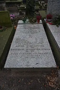 - ↑ Cmentarz Stare Powązki: SIENKIEWICZOWIE, [w:] Warszawskie Zabytkowe Pomniki Nagrobne [dostęp 2019-12-18].