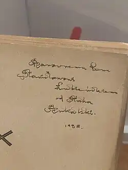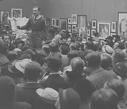 ![]() Stanisław Szukalski podczas wernisażu w Krakowie w 1936 roku. | |
