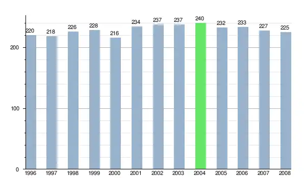 Zmiany liczby ludności w miejscowości Stará Voda od 1996 roku.