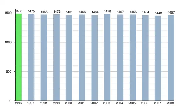 Według danych z dnia 31 grudnia 2012, wieś zamieszkiwały 1422 osoby, w tym 713 kobiet i 709 mężczyzn[7].