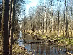 Tutaj pierwotnie przez pierwsze dwieście lat swego istnienia znajdowała się Białowieża. W 1596 roku ze względu na podmokłość terenu mieszkańcy przesiedlili się 5 km w górę rzeki (obecna lokalizacja), gdzie założono miejscowość o tej samej nazwie.