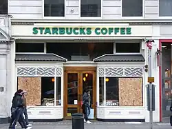 - ↑ CNN – „Starbucks stores vandalized as Seattle braces for WTO anniversary protests”. (ang.).