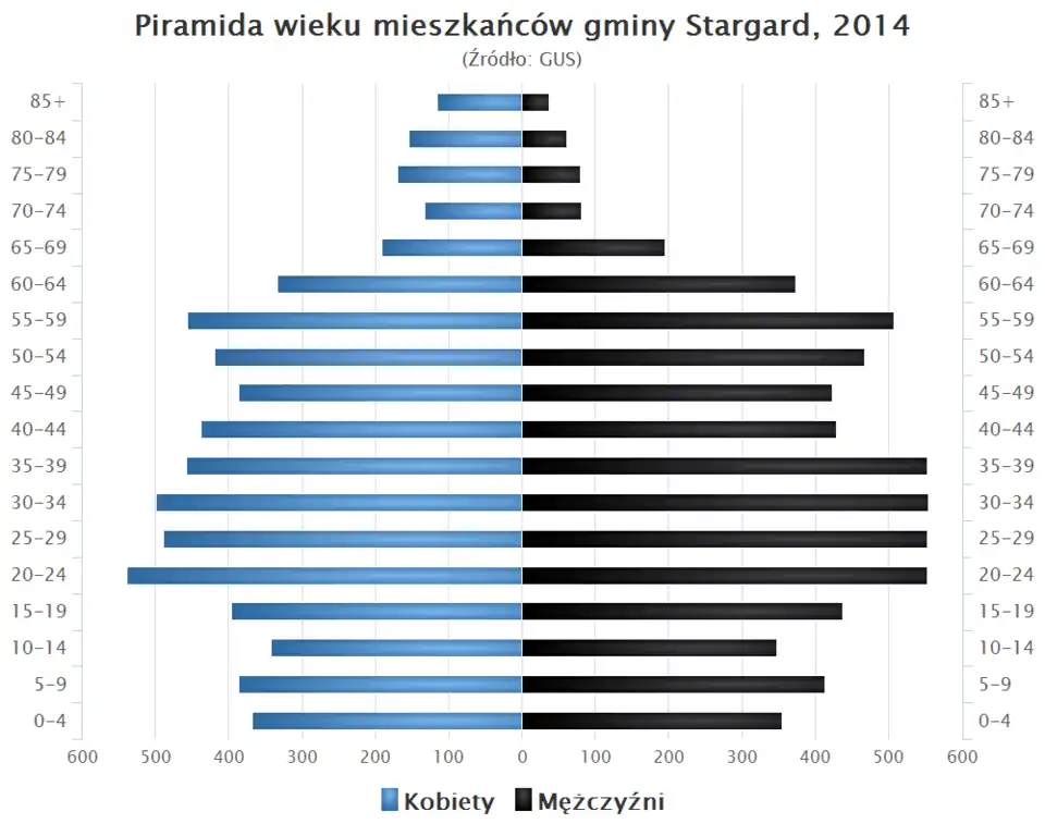 - Piramida wieku mieszkańców gminy Stargard w 2014 roku[1].