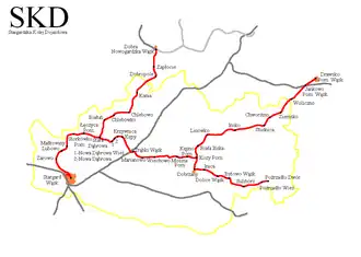 Stargardzka Kolej Wąskotorowa (Stargardzka Kolej Dojazdowa, SKD, niem. Saatziger Kleinbahnen, Szadzka Kolej Wąskotorowa, od nazwy powiatu) – kolej wąskotorowa, liczyła 119,6 km torów o szerokości 1000 mm[1]. Pierwsza linia otwarta w styczniu 1895 r. połączyła Stargard przez Starą Dąbrowę i Kozy Pomorskie z Ińskiem. W miejscowości Trąbki przecięła ona normalnotorową linię Szczecin – Gdańsk. W maju 1895 r. otwarto linię do Kani, przedłużoną w listopadzie do Dobrej Nowogardzkiej, gdzie łączyła się z Reską KW. W sierpniu 1896 r. otwarto linię z Kóz Pomorskich przez Dobrzany do Poźrzadła Dworu. Ostatnią linię otwarto w październiku 1897 r. z Ińska do Jankowa Pomorskiego, gdzie krzyżowała się z linią Runowo Pomorskie – Szczecinek, w 1910 r. została jeszcze przedłużona do stacji Drawsko Pomorskie. W 1964 r. zamknięto linię z Ińska do Drawska Pomorskiego Wąsk., a w 1969 r. z Dobrzan do Poźrzadła Dworu[2]. Parę lat później obie linie zostały rozebrane, a na tym terenie utworzono poligon drawski. W 1989 r. czynnych było 81,7 km linii (68%). W 1996 r. została zamknięta kolejna linia ze Starej Dąbrowy do Ińska i Dobrzan, a w 2001 ostatnia czynna linia ze Stargardu do Dobrej Nowogardzkiej.