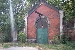 Przy głównym wejściu znajdują się ruiny domu przedpogrzebowego.
