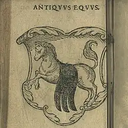 Stary koń, konia białego pośrodku z czarną szatą na czerwonym polu nosi. Ród polski, skłonny do przemocy i grabieży.
