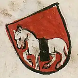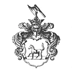 Antiquus Equus album equum in medio stola nigra precinctum in campo rubeo defert. Genus Polonicum et at violenciam rapinasque procliuum.