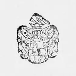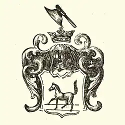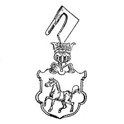 - ↑ Opis współczesny jest skonstruowany zgodnie z obecnymi zasadami heraldyki. Zobacz: Blazonowanie.