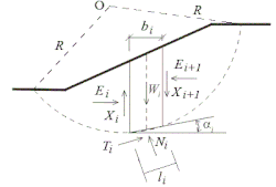 - αi – kąt nachylenia siły normalnej do powierzchni poślizgu,