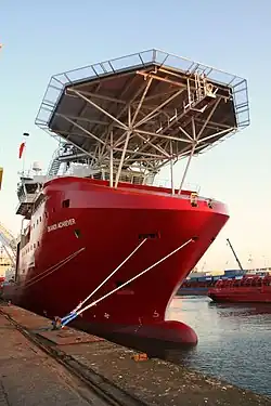 Oprócz tego statki są wyposażone w urządzenia umożliwiające i ułatwiające różne prace podwodne: dźwigi (z możliwością opuszczenia haka kilkaset metrów poniżej powierzchni), dzwon nurkowy, zdalnie sterowane pojazdy podwodne, zaplecze warsztatowe, możliwość zaokrętowania większej liczby osób (w specjalnych modułach mieszkalnych), moon-pool ("studnia", biegnąca przez dno statku, ułatwiająca zanurzanie/wynurzanie nurków i sprzętu).