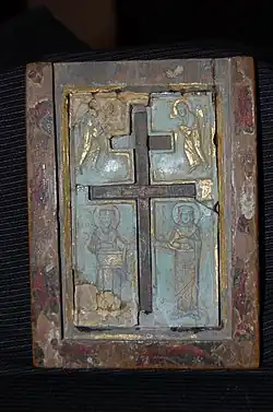 - ↑ Górecki J., 2009: U źródeł chrześcijaństwa w Polsce – relikwiarz Drzewa Krzyża Świętego z Ostrowa Lednickiego. W: Wyrwa A.M. (red. nauk.): Stauroteka lednicka. Materiały, studia i analizy. Biblioteka Studiów Lednickich, seria C, t. 2, Muzeum Pierwszych Piastów na Lednicy, s. 33–34.