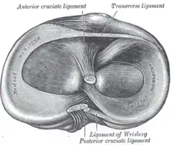 - więzadło poprzeczne kolana łączące ze sobą rogi przednie łąkotek,