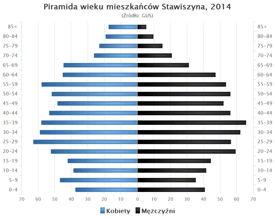 - Piramida wieku mieszkańców Stawiszyna w 2014 roku[14].