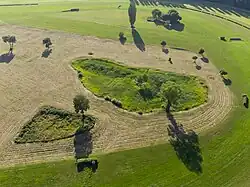 ![]() Widok z powietrza na jeden z dwóch stawów na terenie toru wyścigów konnych, położony bardziej na południe | |