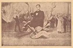Stefan Okrzeja – Syn Ludu roboczego – Chluba i zaszczyt PPS – Dzielny pracownik sprawy proletariatu – Mężny żołnierz rewolucji oddał swe młodzieńcze życie w walce o Socjalizm i Niepodległość – Stracony na stokach cytadeli dnia 21 lipca 1905 roku[18].