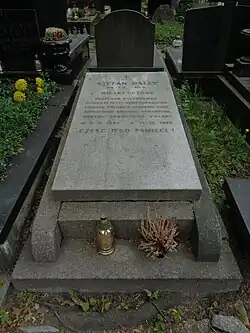 Spoczywa na cmentarzu Powązkowskim w Warszawie (Kwatera 133, Rząd 6, Miejsce 15)[11].