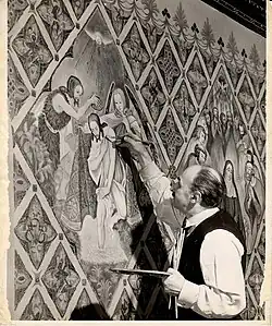 ![]() Stefan Kątski w trakcie tworzenia dekoracji kurdybanowej (Montreal, lata 50.) | |