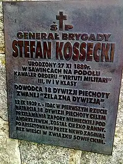- ↑ Dwukrotnie dostał od Rosjan propozycję opisania doświadczeń z walki 18 DP z oddziałami niemieckimi w czasie kampanii wrześniowej. Zgodził się, pod warunkiem pisemnej zgody na to polskich władz emigracyjnych. W ówczesnej sytuacji politycznej uzyskanie takiej zgody było niemożliwe, tym samym najprawdopodobniej przypieczętował swój dalszy los. Informacje o tym rodzina Kosseckich otrzymała po wojnie listownie od ppłk. Władysława Chudego, współwięźnia, który się uratował i przebywał na Zachodzie, a potem opublikował swe wspomnienia w paryskich „Zeszytach Historycznych”[33].