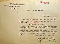 - Krzyż Niepodległości[7] (1932 r.);